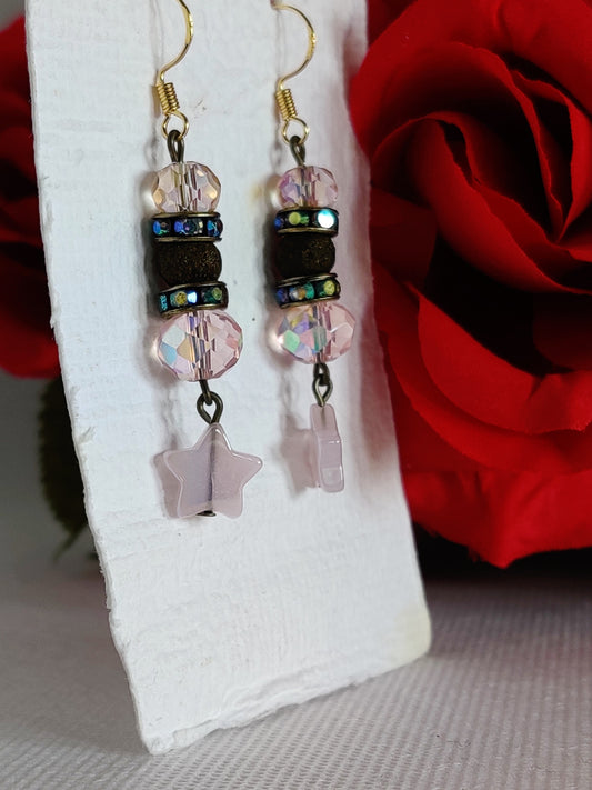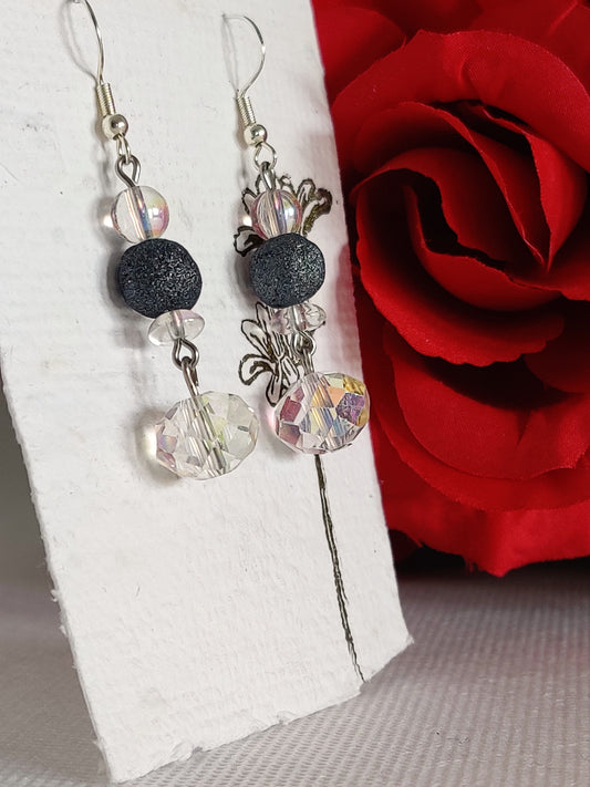 100% pure rose petals and spring water are boiled and cooked down to create a clay. That clay is then hand rolled into beads and set to dry. The result is beautiful, organic, black beads with a hint of natural sparkle that will forever smell like roses. Each bead takes about a half of a rose to make, and each earring contains 1-2 rose beads as an accent.