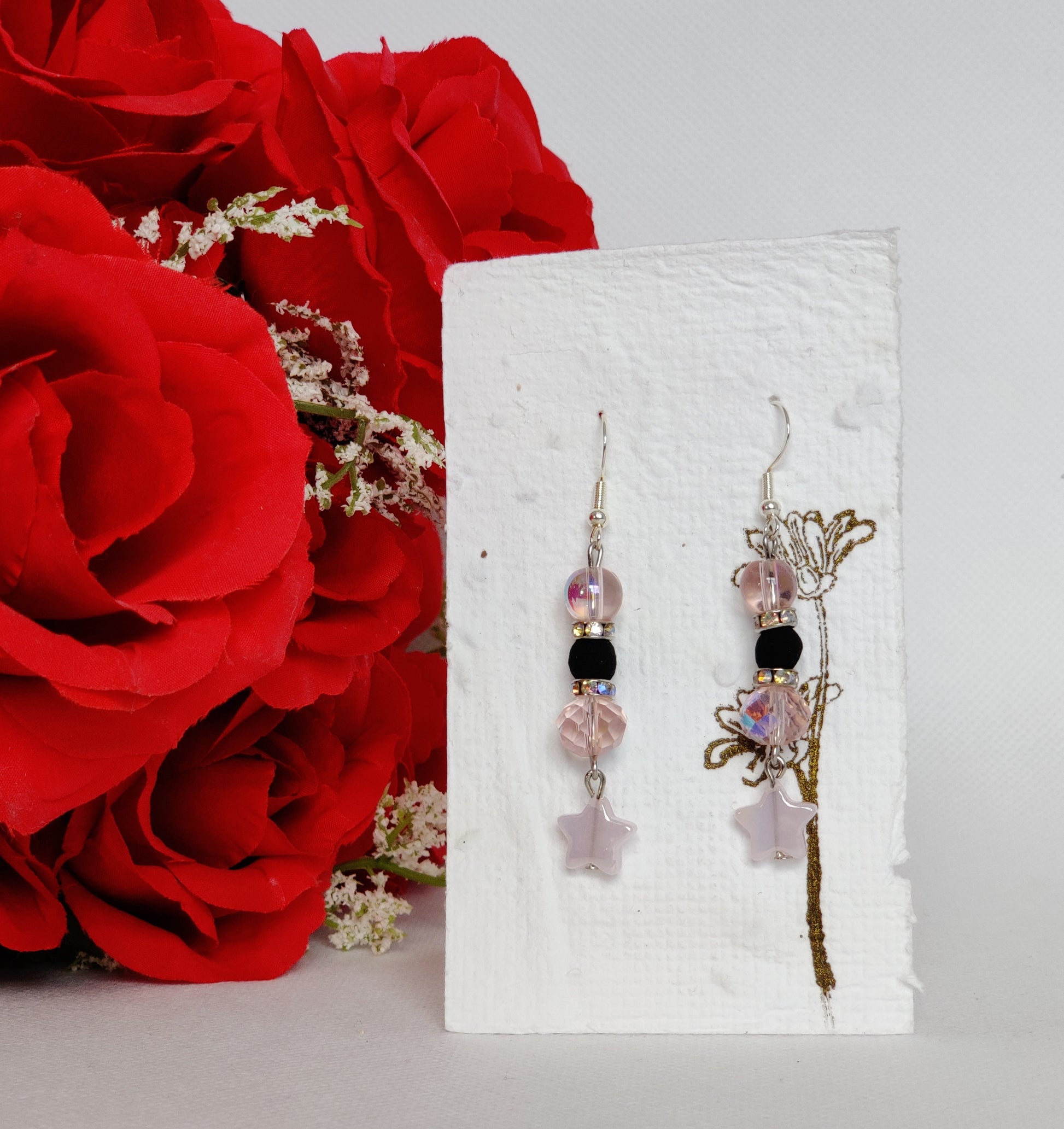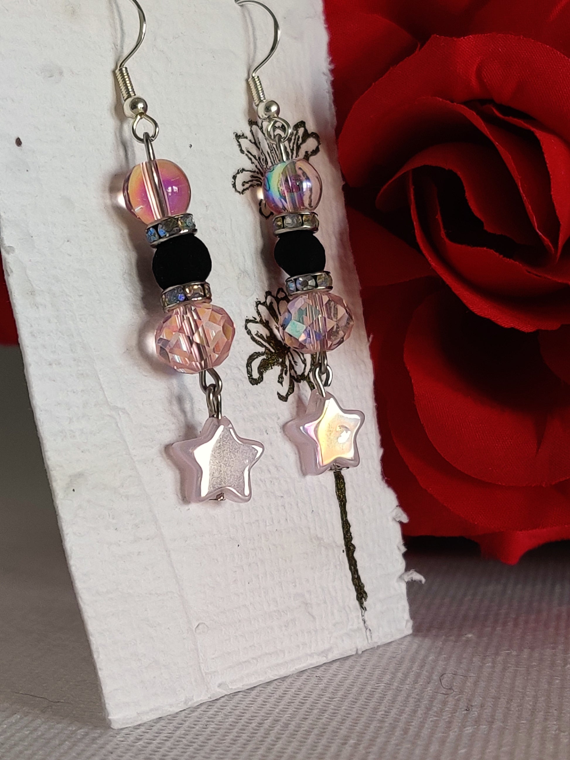 Pink aurora borealis glass beads, rhinestone spacers, black rose beads