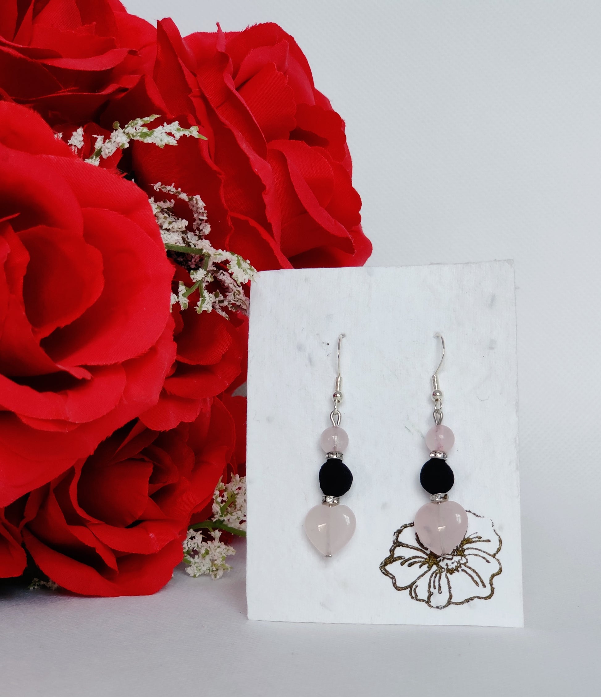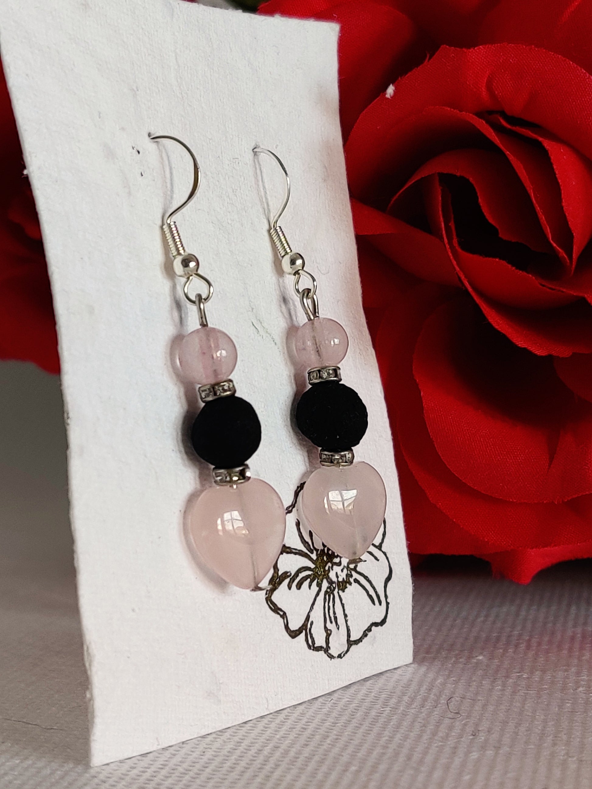 Rose quartz hearts and beads, rhinestone spacers, black rose beads.