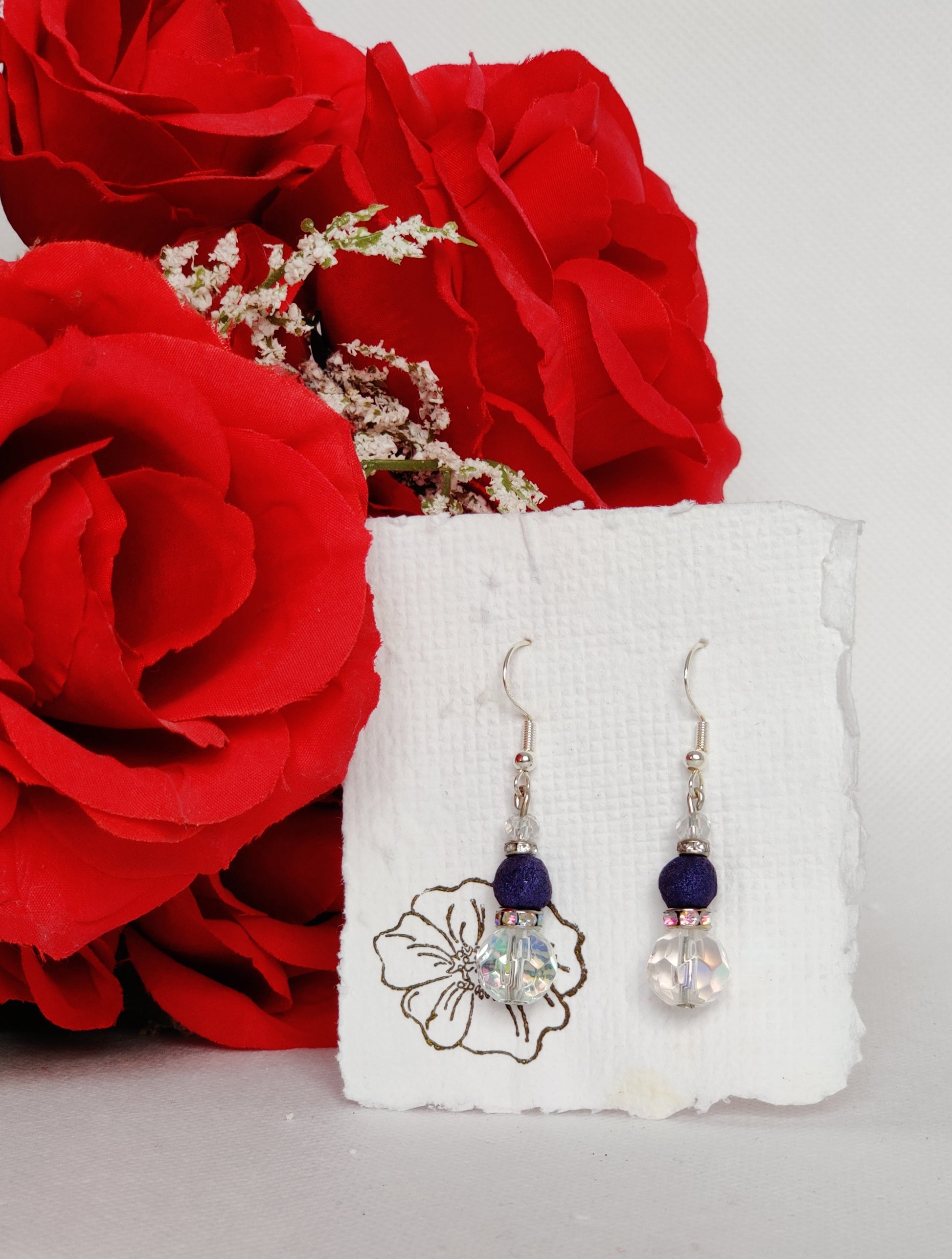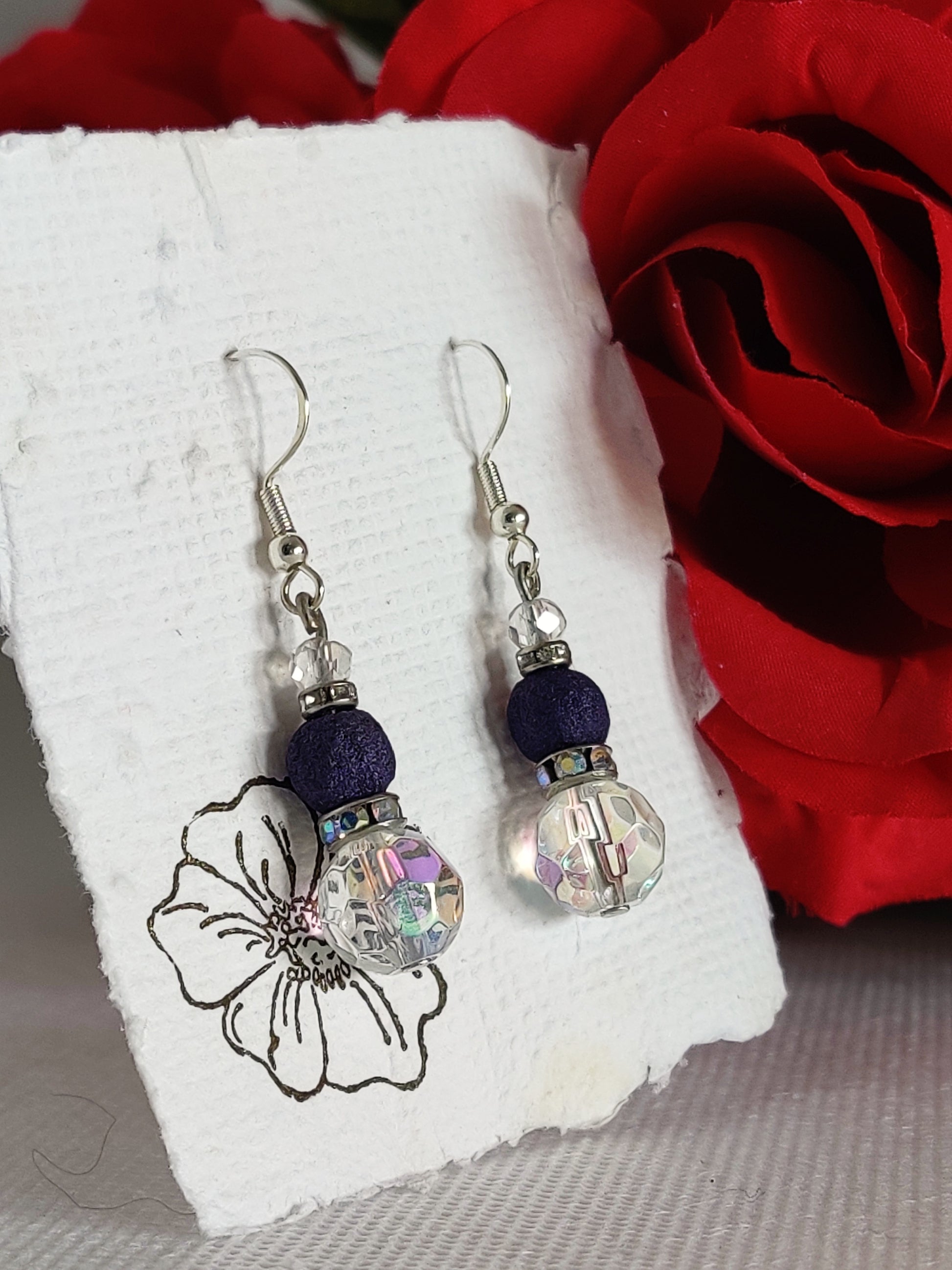 Clear aurora borealis glass beads, rhinestone spacers, purple shimmer rose beads.