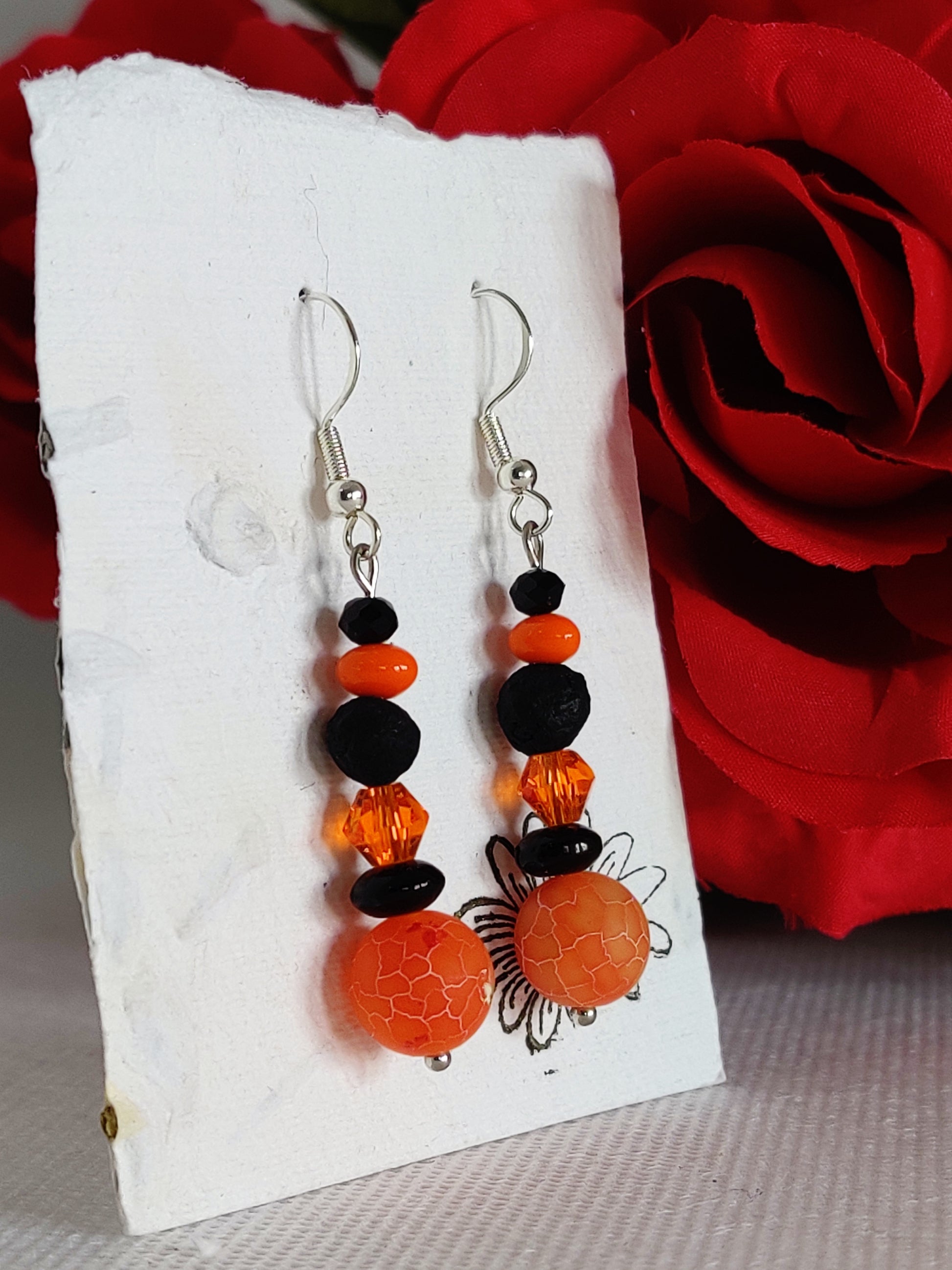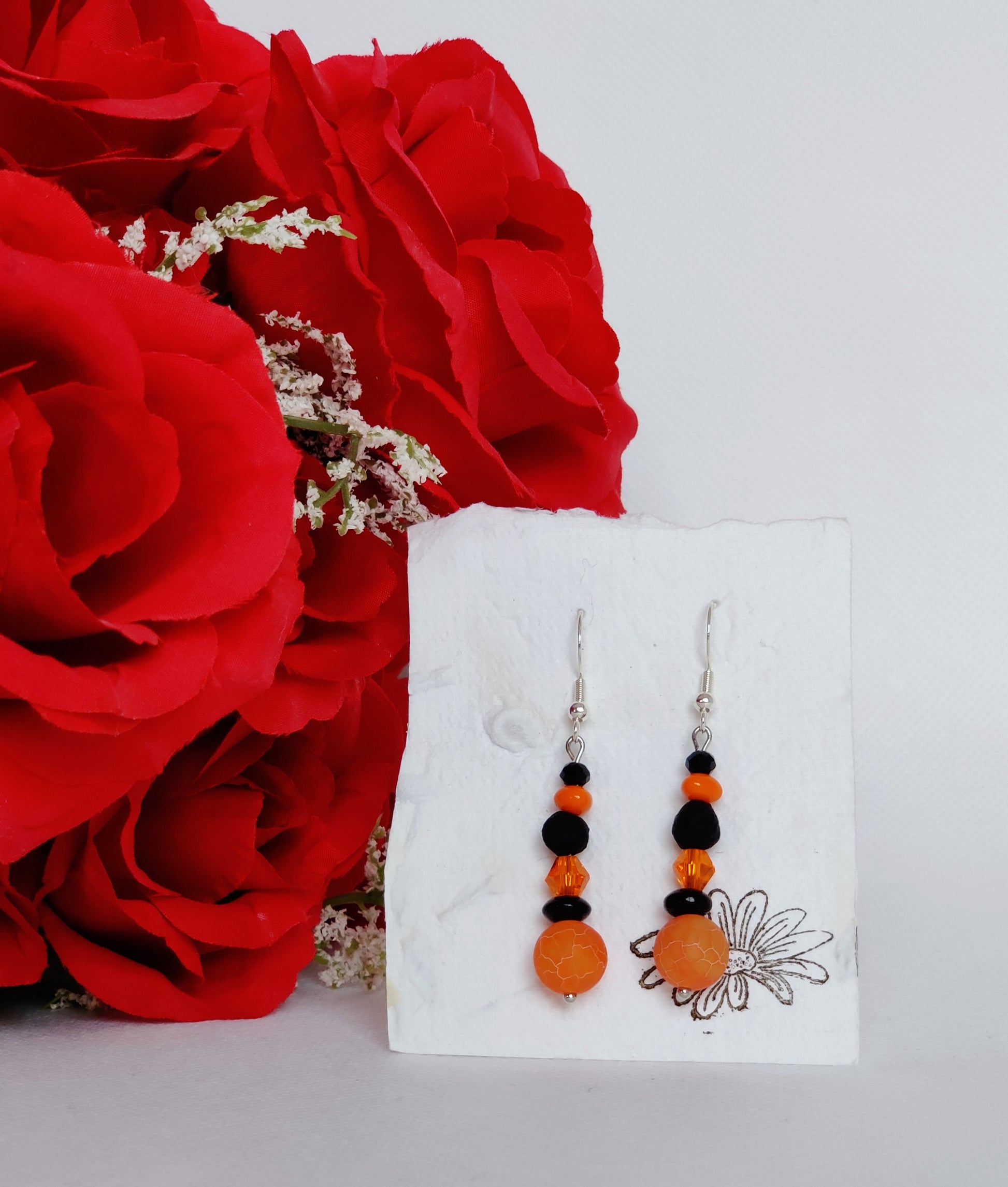 Orange agate beads, faceted orange glass beads, black glass beads, black faceted glass beads, orange stone beads, black rose beads