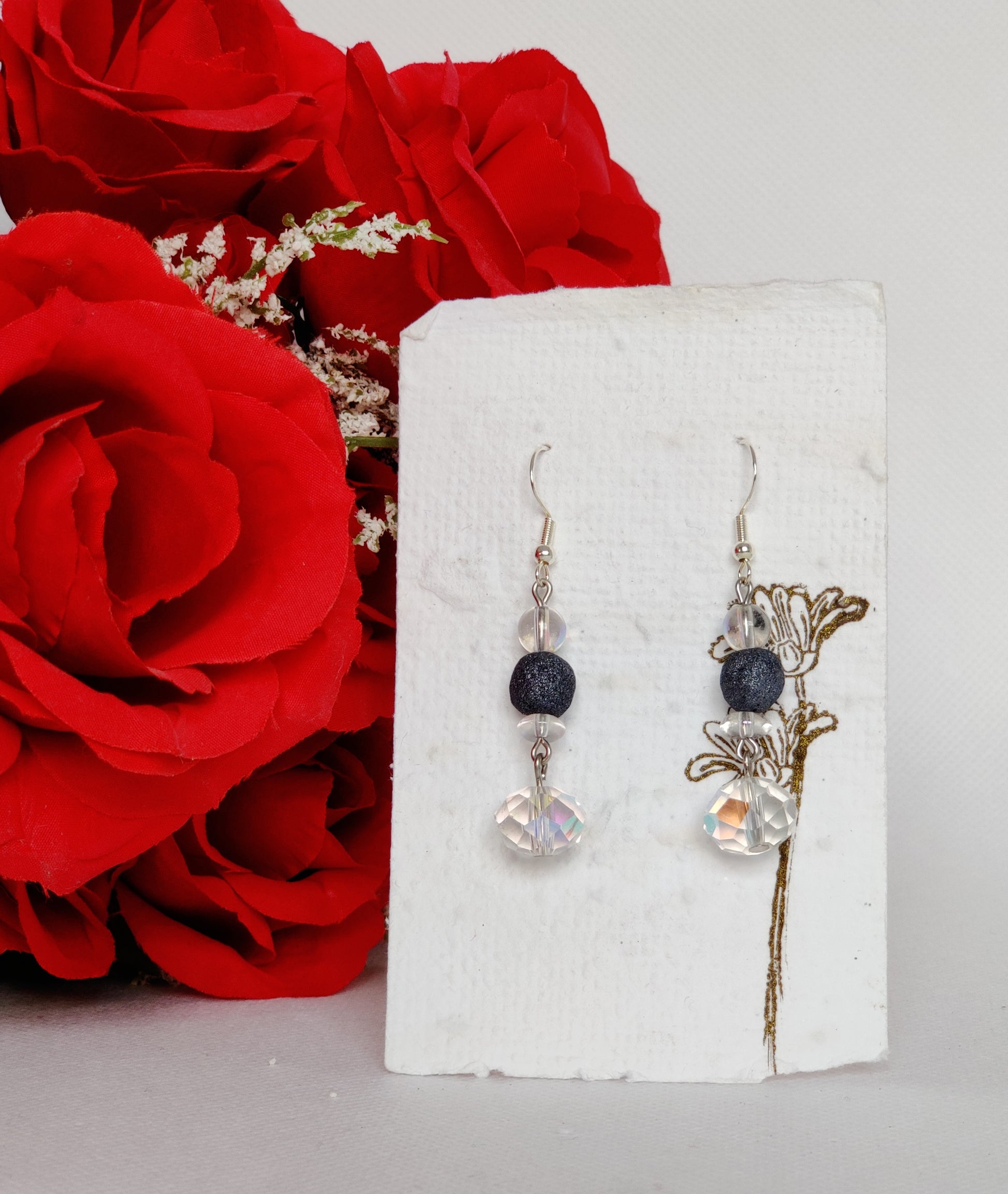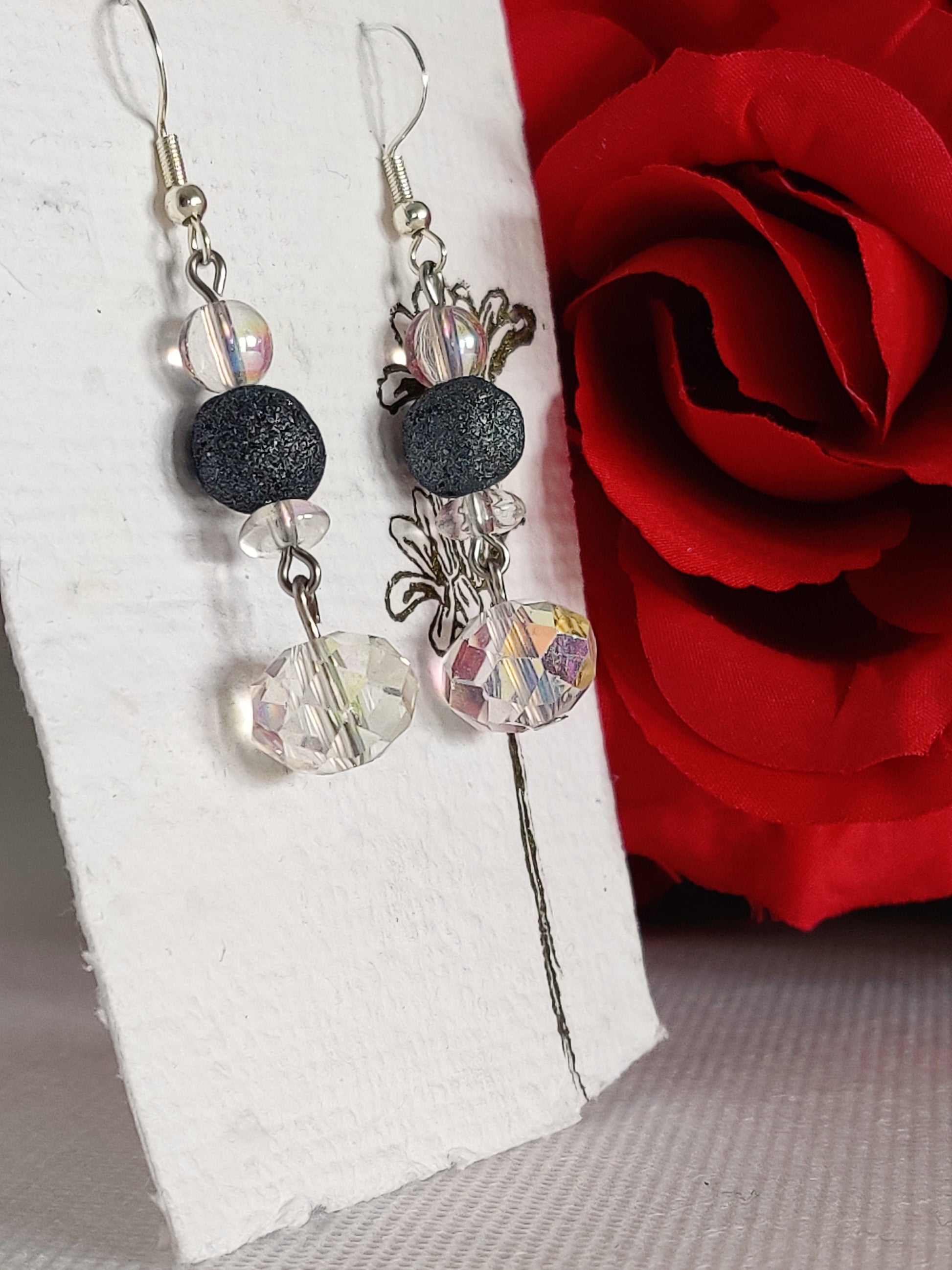 Clear aurora borealis glass beads, silver shimmer rose beads.